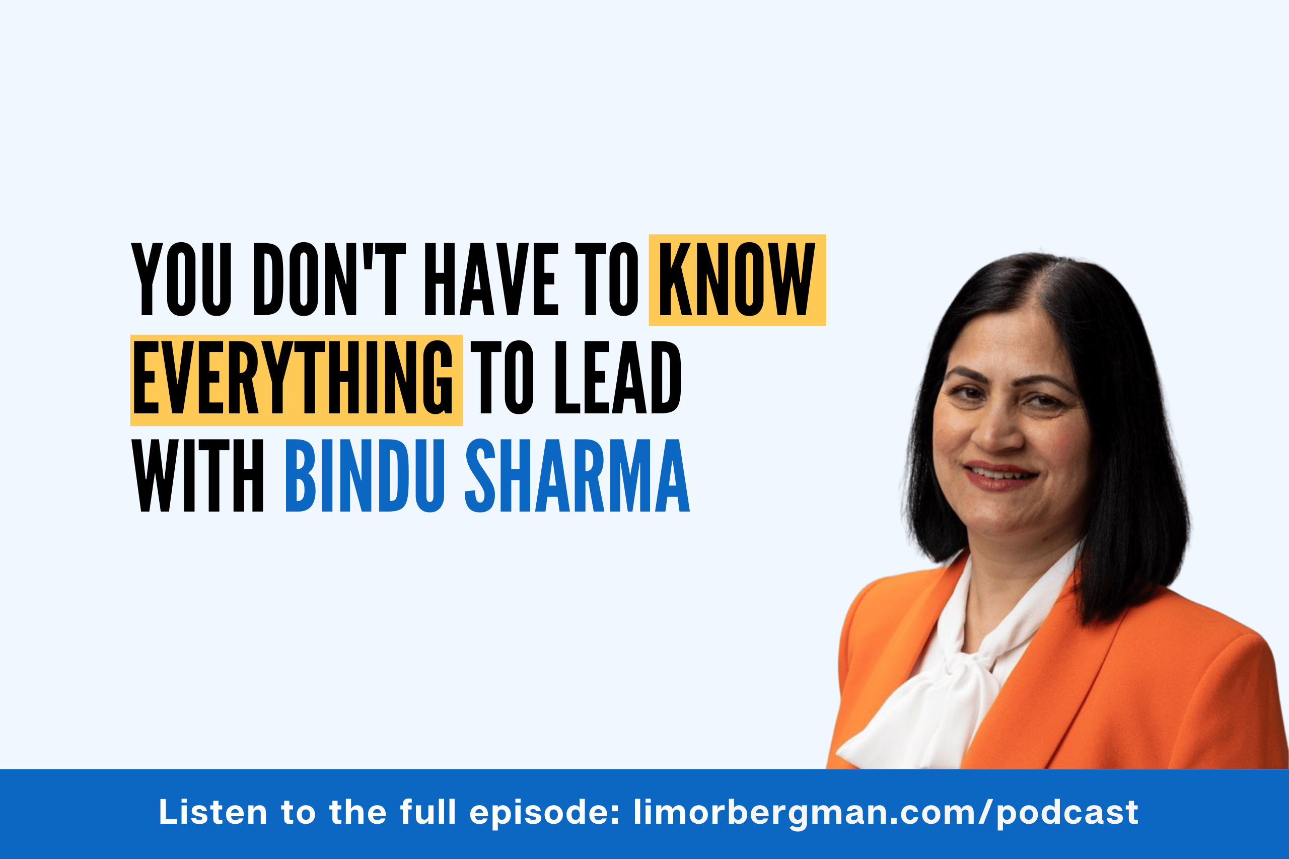That was the question that opened my conversation with Bindu Sharma on this week’s episode of From a Woman to a Leader (https://limorbergman.com/podcast/). Bindu is a Senior Director of Cloud Financial Operations at Teradata. Her career has crossed quality assurance, program management, hardware compliance, and cloud, plus a three-year break in the middle when her second child was a baby. And the thing she credits for all of it isn’t how much she knows. It’s how openly she says what she doesn’t.
